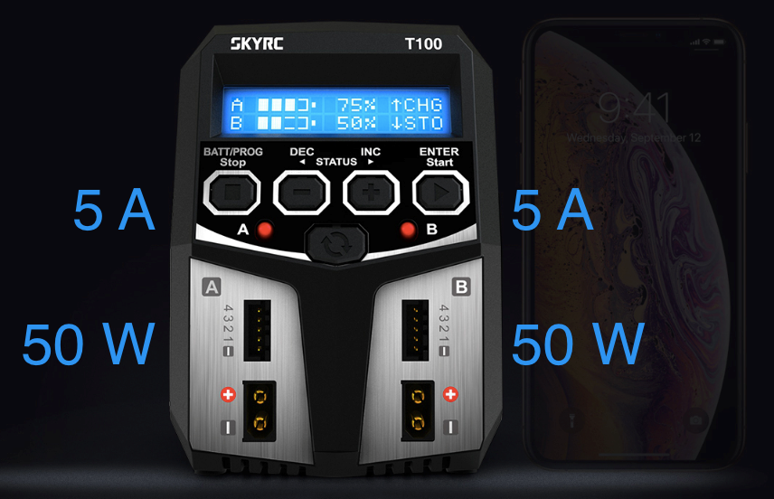 SkyRC T100 AC DUO LiPo 2-4s 5A 2x50W Charger