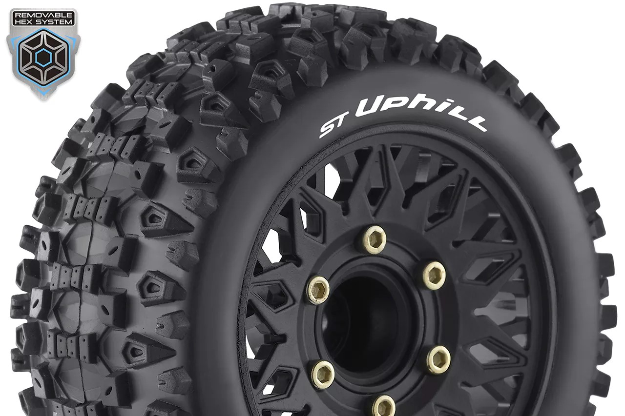 Louise RC - ST-UPHILL - 1-10 Stadium Truck Tire Set - Mounted - Sport - Black Wheels - Removable HEX 12 Narrow, 12 Wide, 14, 17mm - L-T3211SX