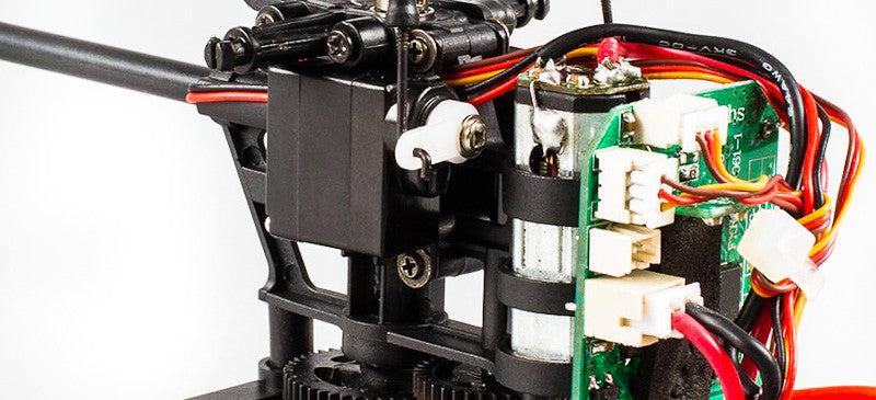 Separate 1.7-gram digital servos offer precision control and easy maintenance in comparison to integrated servos found in similar class helis. Plus, the two-stage gear train is durable, quiet and efficient.