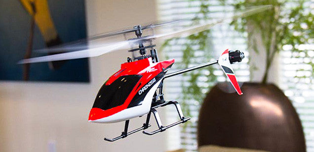 The ultra-micro sized Chronos FP 110 is a larger in class heli for improved performance and handling when flying outdoors in winds up to 5-7 mph, yet is small enough to fly comfortably indoors.  It’s also equipped with class-leading features such as separate 1.7-gram digital servos, a quiet and efficient two-stage gear-train, plus a lightweight yet durable airframe that is 100% factory-assembled and ready-to-fly out of the box!