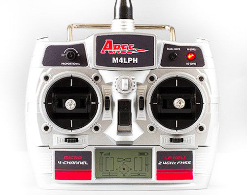 Within the box you’ll find everything needed for fight which includes a 4-channel transmitter that operates on 2.4 GHz technology with an LCD screen and dual rate function, AA batteries, 500mAh 1S 3.7V LiPo battery and a charger that conveniently charges from almost any AC outlet.  With nothing extra to buy, you’ll be flying within minutes of opening the box!