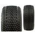 This is the HOT DICES tire. This tire features a medium size dice cube lugs with perfectly balanced tread spacing for maximum forward traction. The two outer rows of lugs deliver a quick corner speed, a very stable an easy to drive feeling and predictable side bite.  It offers drivers consistent handling on outdoor racetracks with blue groove or a little bit wet and really stands out in no dust and high grip track conditions. This tire will give your buggy qualifying speed with tread life capable of handling hour long A-mains due to its good wear characteristics.