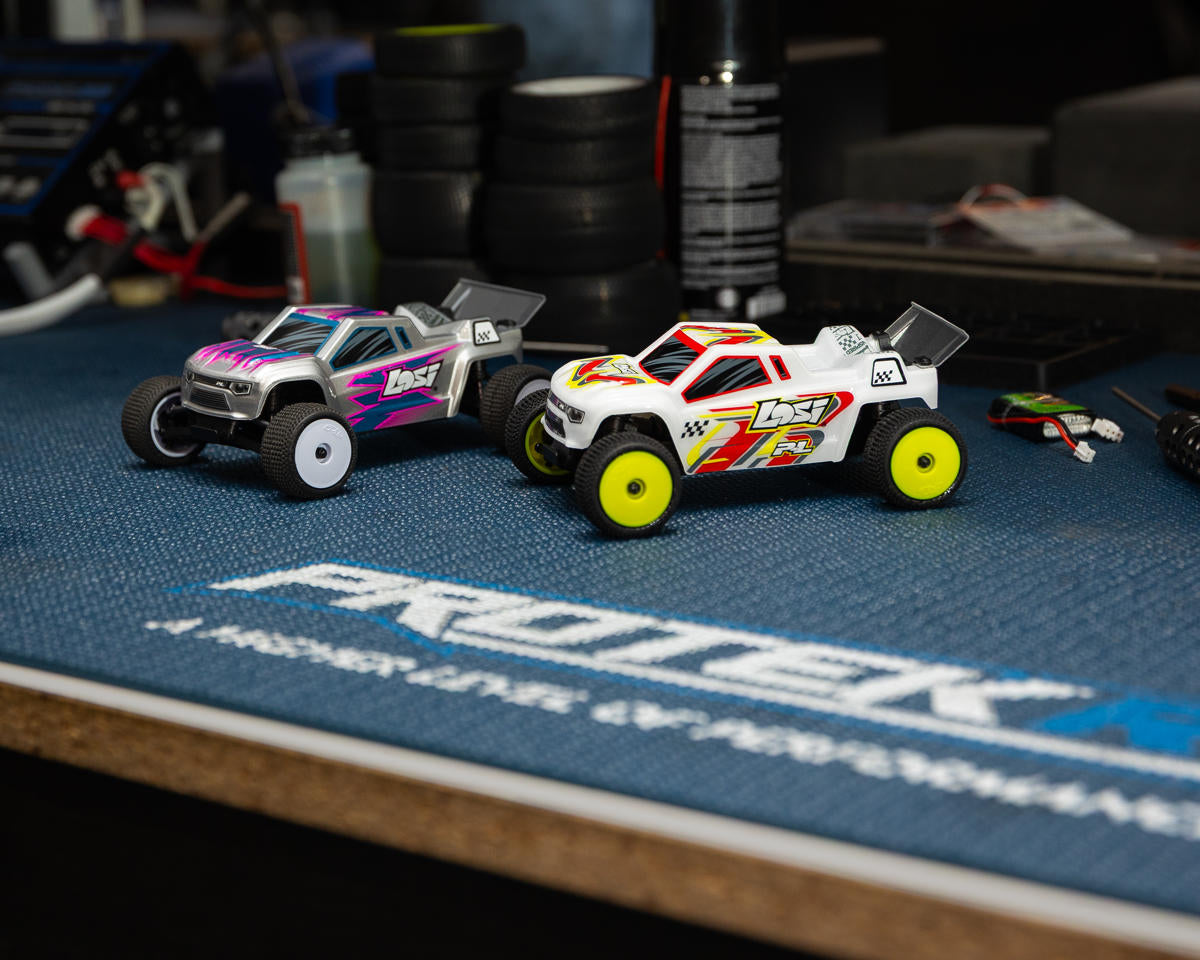 The Losi Micro-T 1/28 RTR 2WD Electric Stadium Truck, inspired by a Team Losi Racing (TLR) 2023 IFMAR World Champion, proves that big performance can come in conveniently small packages. The Micro-T makes it easy to enjoy racing with friends and family almost anywhere!