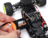 Made from durable aluminum and given a black anodized finish, the chassis includes front caster kick and side bends to create a strong and rigid foundation. The 1:28 Pro-Line race inspired body features a hinged design and is secured in the front using a strong hook and loop tape. Simply pull up on the front of the body, and it will lift and hinge back, making it convenient to access your electronics.