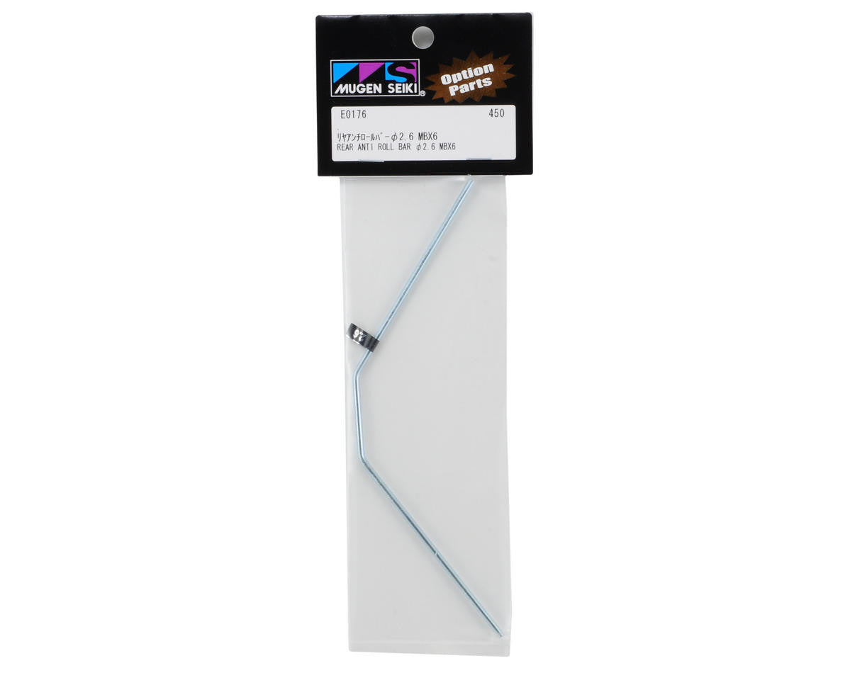 This is a Mugen 2.6mm rear anti-roll bar, and is intended for use with the Mugen MBX6 and MBX6T 1/8 scale vehicles.