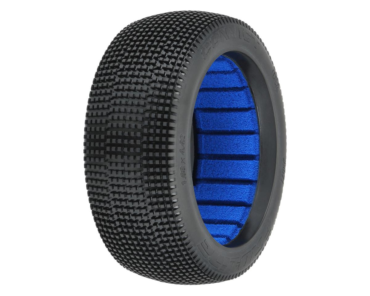 Pro-Line Convict 1/8 Buggy Tires are an updated version of the World Champion Fugitive tires. The Fugitive tires were developed with a long lasting tread that was produced for the harshest conditions. However, on most racetracks, you don't need that much tread. Enter the Convict tires. Featuring smaller and more spaced-out tread, so it has the speed for qualifying while still having the right amount of tread to last long main events. Strategically placed small connecting bars improve the stability of the tire tread, which is especially important when used in softer compounds. Package includes two tires with foams.