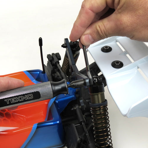 TKR8027 shock standoffs are a direct replacement for TKR5027 and intended to be used with TKR8702 and TKR6018 shock caps as they provide additional clearance between the shock tower and cap. In addition to being slightly longer, they have more material to improve durability and are keyed for use with TKR1103 Turnbuckle Wrench (4mm / 5mm, hardened steel) for easy installation (see image below). TKR8027 can also be used with TKR6003 and TKR6003B shock caps.